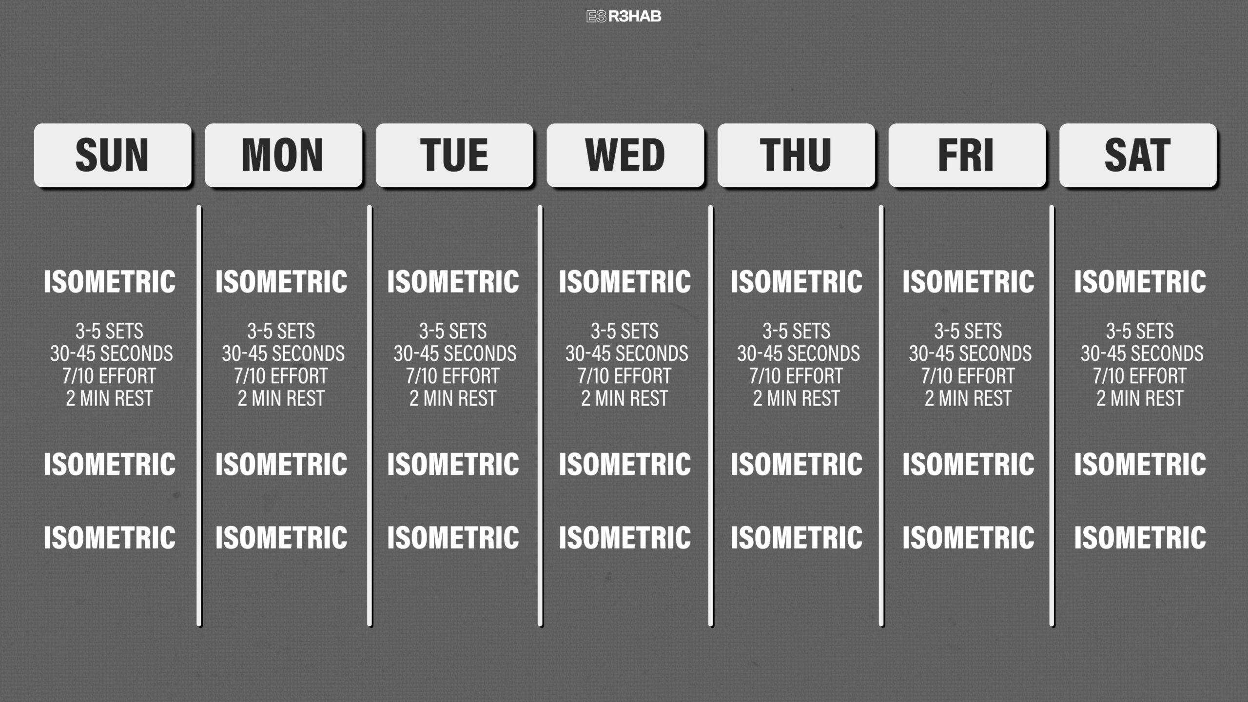 To help facilitate recovery, rehab will revolve around 2 main components. First, you will focus on load management & activity modifications which involve temporarily modifying or minimizing painful activities in order to aid in long-term recovery. Second, you will implement progressive loading exercises 2 to 3 days a week to help further increase your capacity so you can eventually tolerate more load.