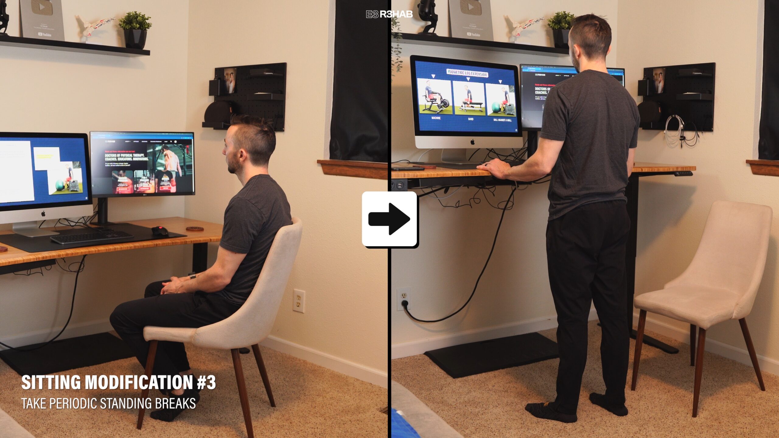 If it is the duration of sitting that is problematic, you can take periodic standing breaks or get up and move around more frequently.