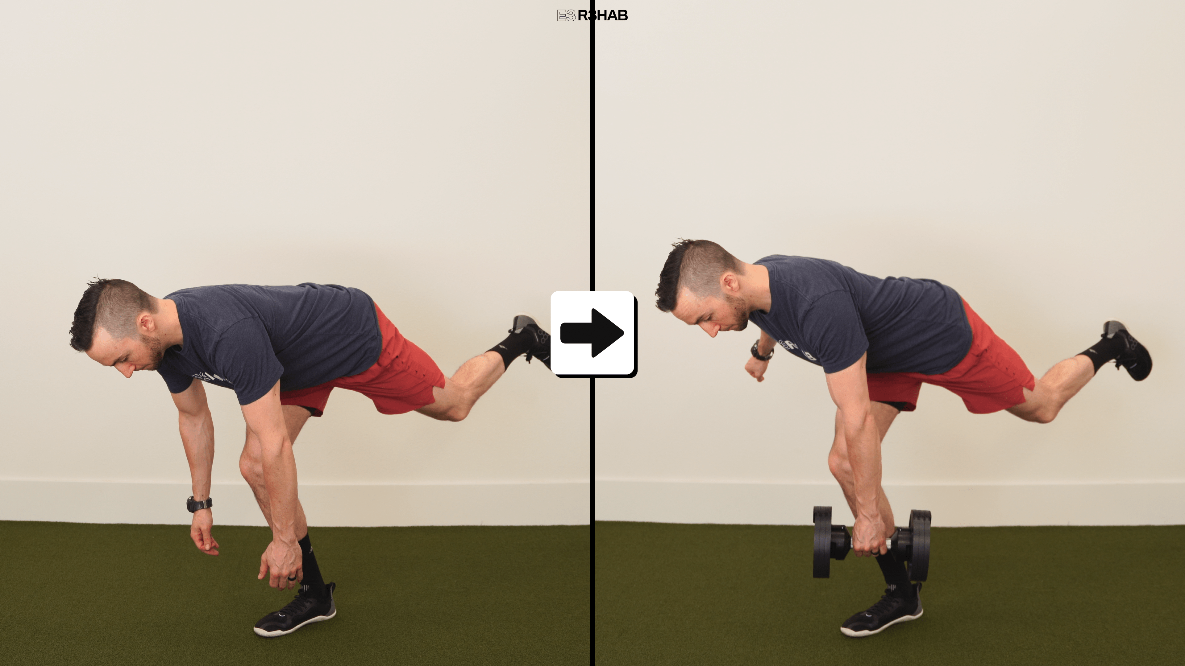 As symptoms allow, progressing toward a hip hinge variation, such as a deadlift, can help build your tolerance to hamstring loading in a maximally stretched position. Here are a few options: