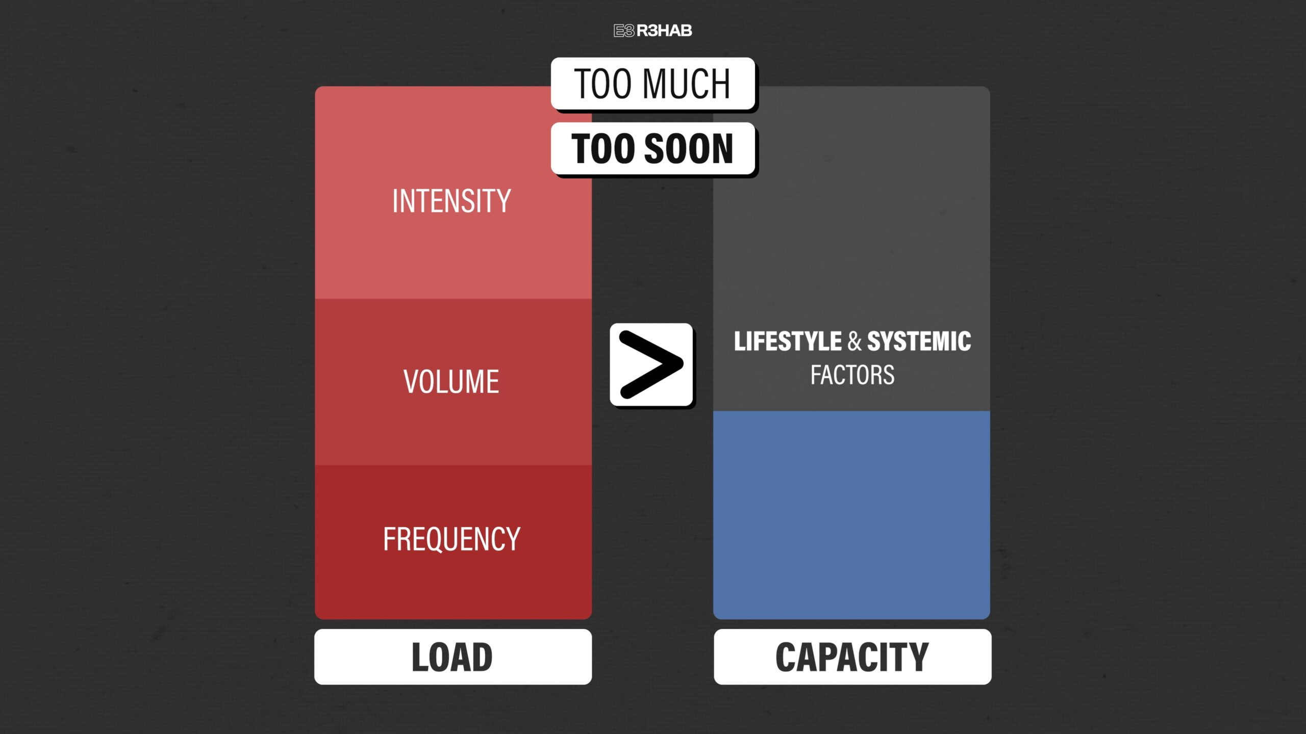 The first main component of rehab is load management & activity modifications which are about temporarily modifying and minimizing painful activities to aid in long-term recovery. This will help reduce the load side of the equation in order to allow you to continue running, exercising, sitting, etc. with tolerable symptoms.