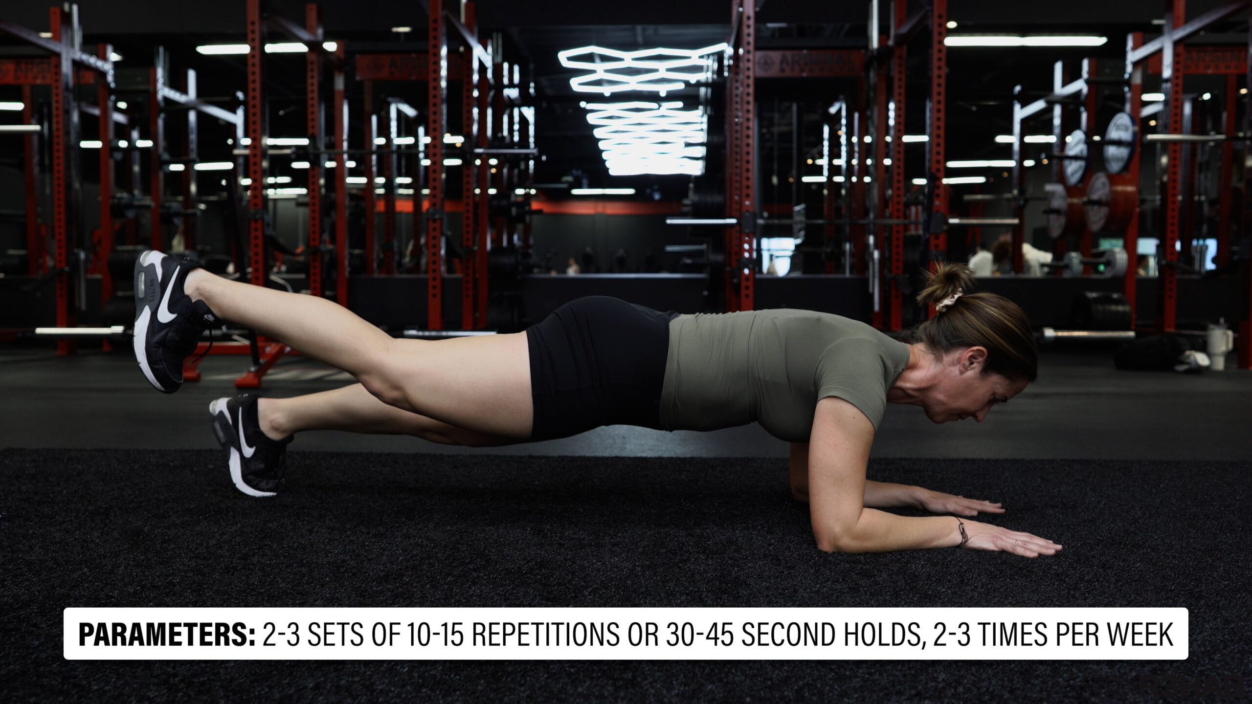 To train the front of the trunk and hips, planks can be performed. To make them easier, do them on your knees or elevate your forearms. To make them more difficult for your hips, you can perform alternating hip extension.