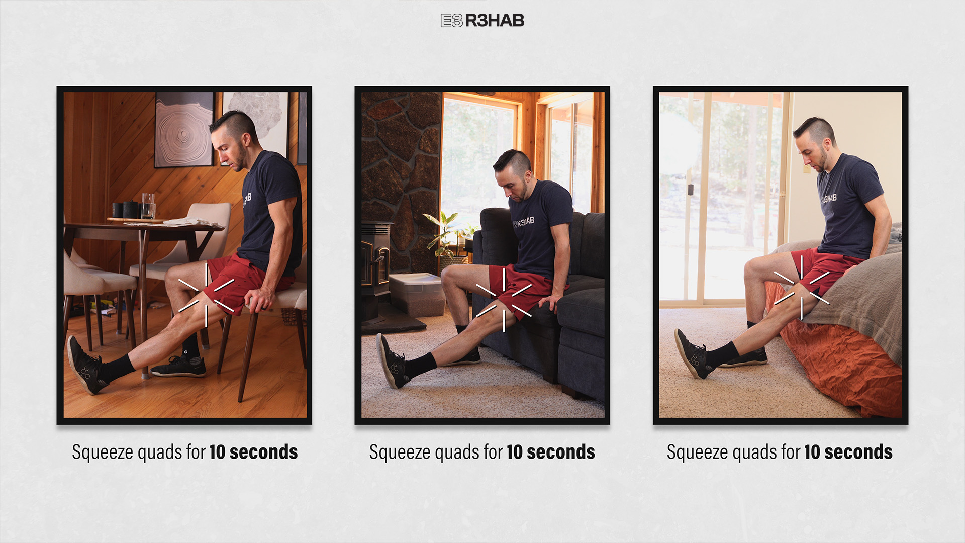 Regaining quadriceps strength is a major priority for a variety of reasons including: normalizing your walking quality and speed and increasing your tolerance and capacity for a variety of daily activities and valued life activities. There are a host of exercises to accomplish this goal, and you will receive a variety of them from your orthopedic and rehab teams. Something as simple as squeezing the quad muscle as often as possible throughout the day, can be very beneficial during the first few days / weeks. This will help “wake-up” the quad during a period of time when it naturally wants to protect your knee from further damage by not contracting.
