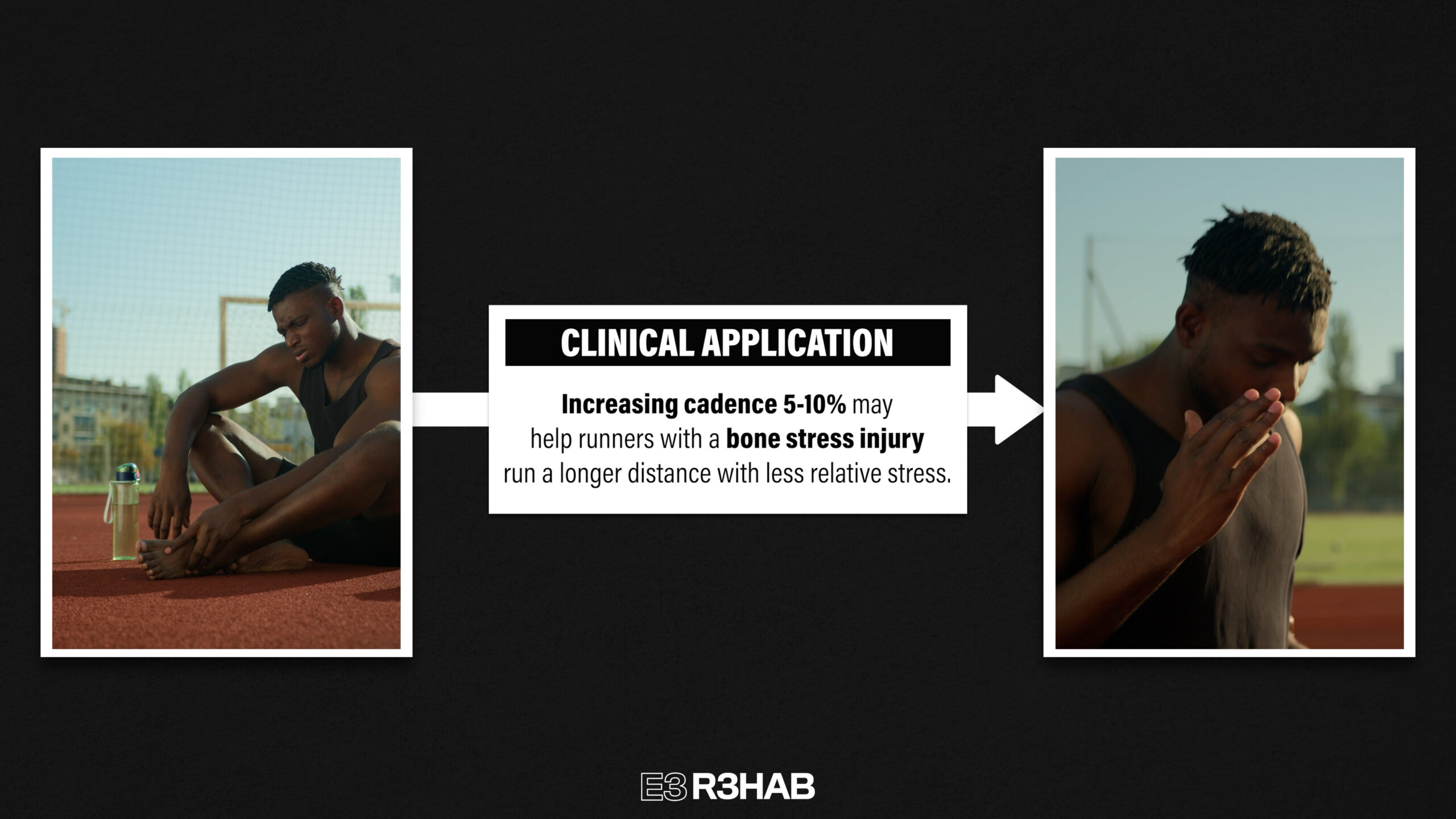 Although a higher total number of steps are taken with an increase in cadence, the peak stress per step is lower, and this seems to be more impactful for bone health. As a result, while managing a current bone stress injury, an increase in running cadence may be helpful to allow the individual to cover a longer distance with less relative stress on the area of concern.