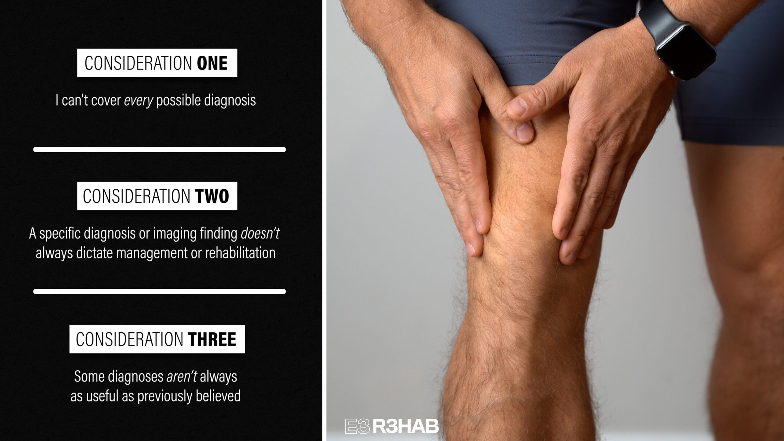 2. A specific diagnosis or imaging finding doesn’t always dictate management or rehabilitation. Two people may technically have the same diagnosis or imaging finding, but they might have significantly different symptoms, severity of symptoms, aggravating factors, functional capabilities, goals, lifestyles, etc. Oftentimes the person dictates the rehabilitation process more than the diagnosis itself.